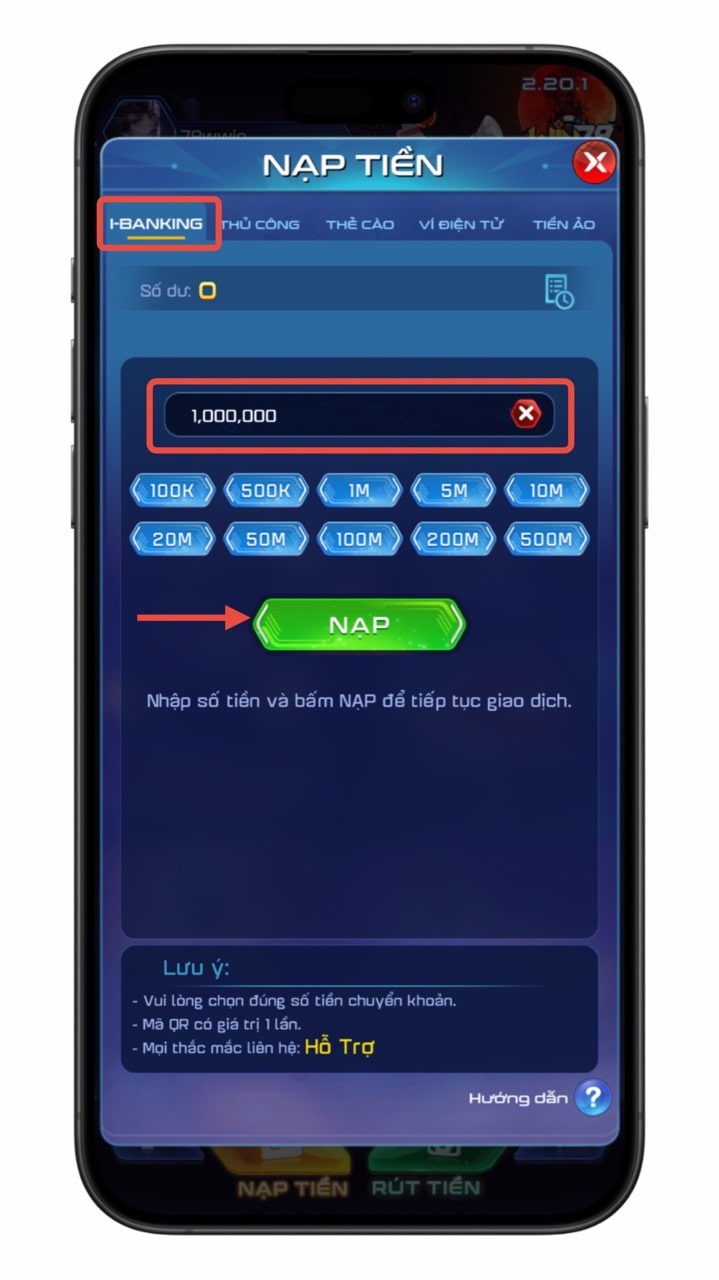 Chọn tiếp phương thức nạp I-BANKING.