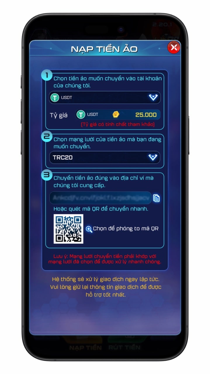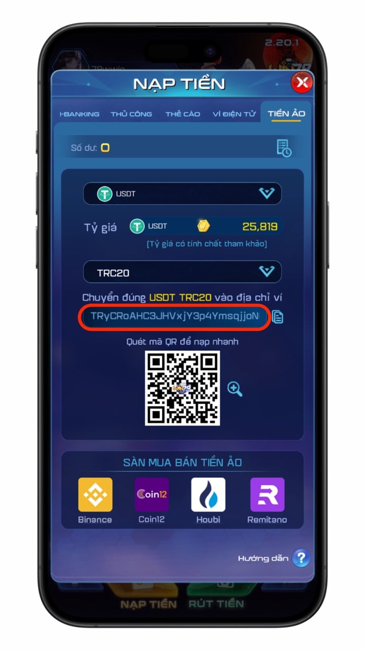 Chuyển tiền ảo qua đúng địa chỉ ví Win79 vừa cung cấp.